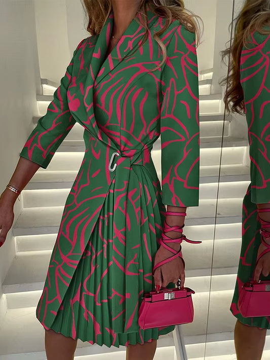 Vibe Curve: Vestido estampado con cinturón y escote en V profundo